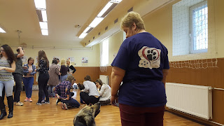 pórázon körbe kellett vezetni a kúszó körül, majd a kislabdát át kellett át